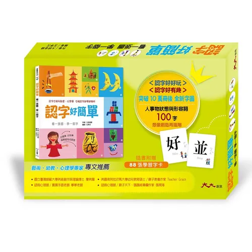 讓媽媽嘖、嘖、稱、奇的學齡兒童識字書「認字好好玩」、「認字好有趣」,以孩子最能接受的看圖說故事方式,輕鬆愉快學習中文字!不但獲得台灣、香港、美國 國際華人家庭試讀心得五顆星,狂銷10萬冊認字系列!這次全新第三本「認字好簡單」字圖也登場囉~