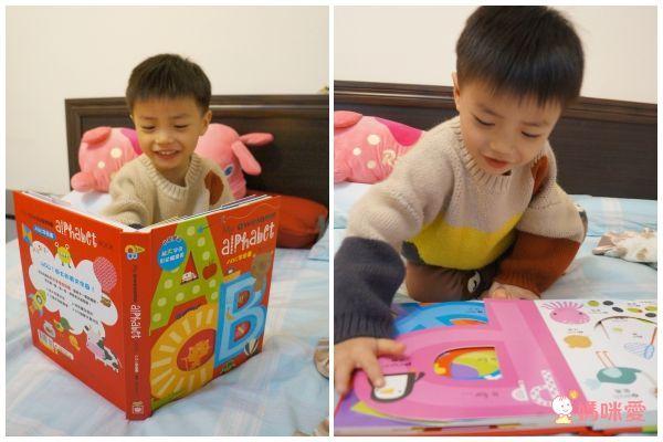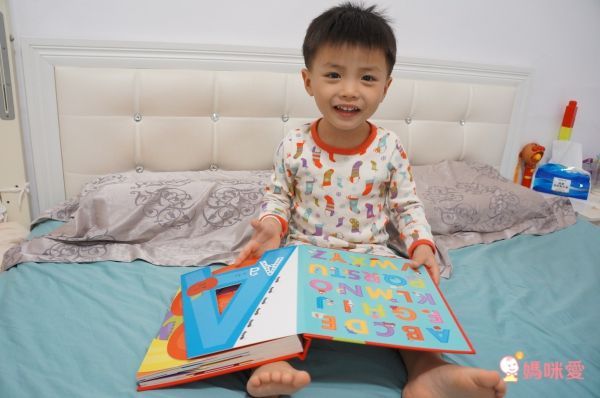叡叡一拿到就好興奮,馬上開始唱ABC字母英文歌(之前有教他唱,可是不會認字),現在終於可以邊唱邊學會看字母囉!