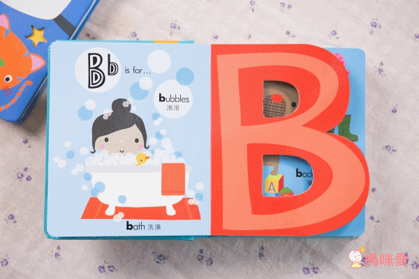 鏤空的特殊設計,翻頁直接就是字母的形狀,寶貝看的時候更可以摸摸看,感受字母的形狀手腦並用的學習更有感覺喔!而且厚頁完全不怕撕壞喔~林志穎的寶貝鵝子就是這樣一頁一頁翻,26個字母都倒背如流了呢!