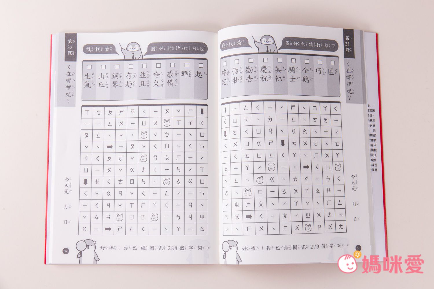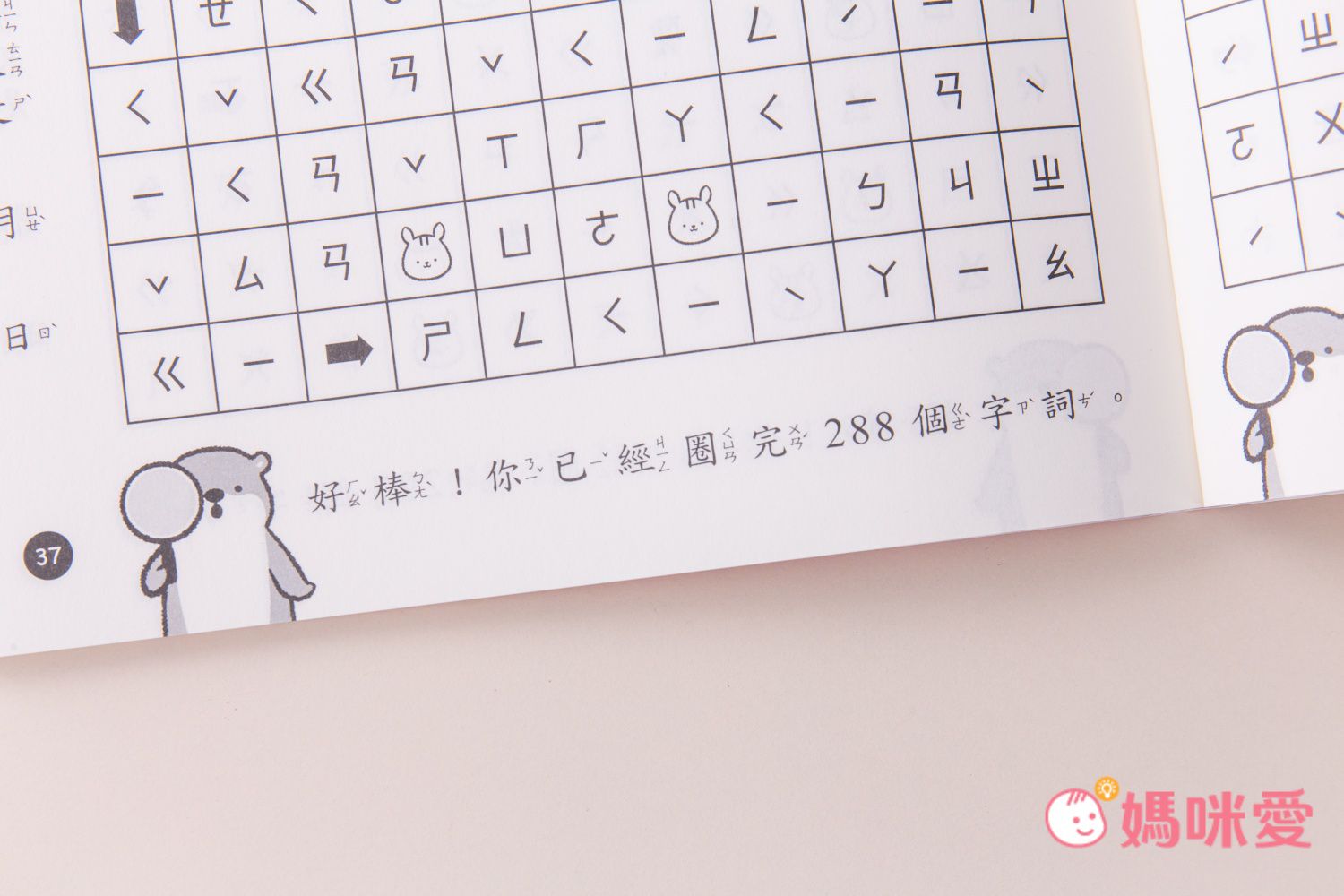 孩子努力的過程當然不要忘了適時給鼓勵,數字則是從第一頁開始累積到目前完成頁數,所以到37頁,孩子一共就學了288個字詞喔!