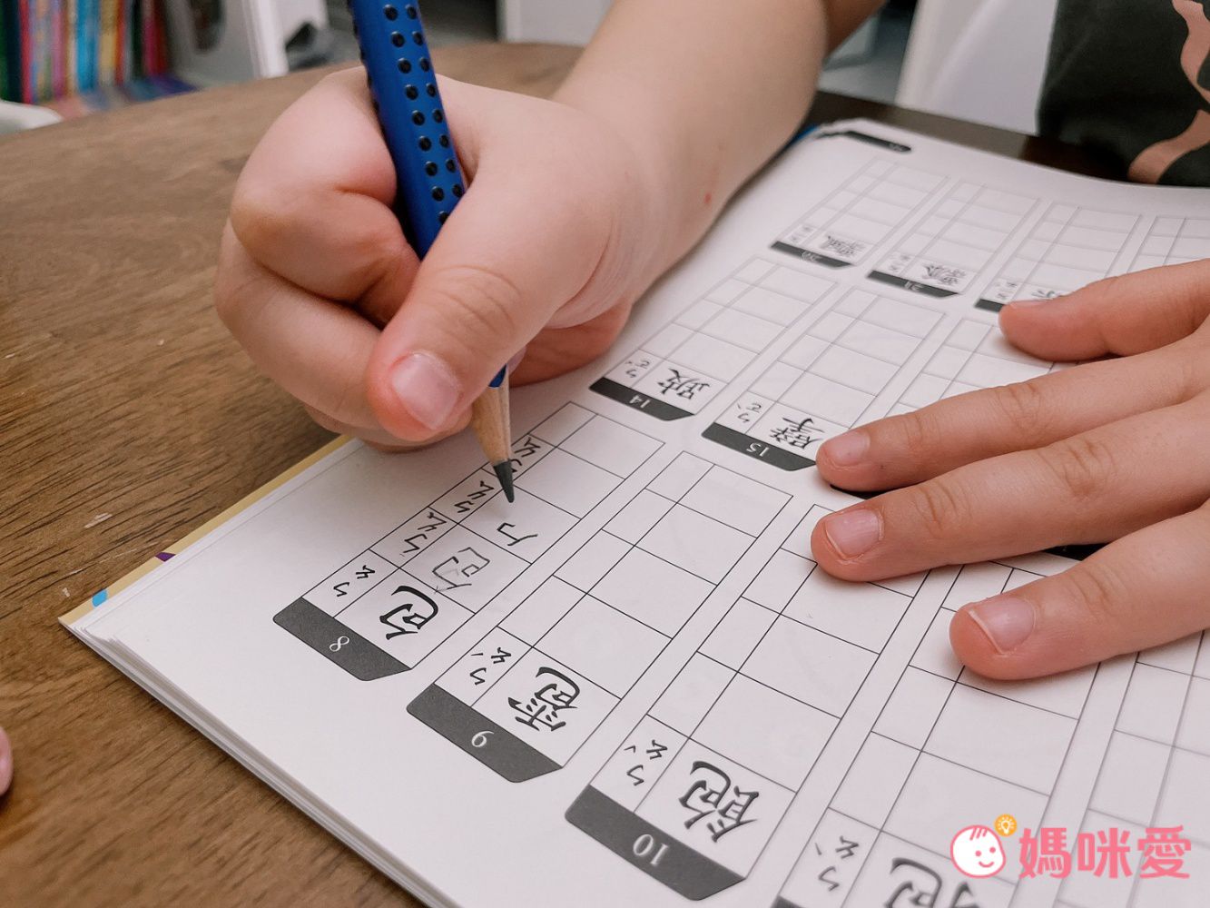 凹槽練習本:我的第一套魔法練習寫字書-注音ㄅㄆㄇ-內附1本魔法練習寫字書、1款小魚造型握筆器、1隻可愛筆管、4支魔法消失筆芯
