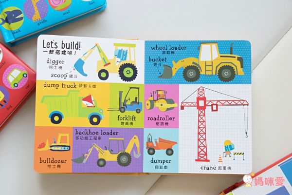 這本一打開滿滿都是男寶們喜歡的交通工具、工程車,而且還會分成搭建現場、農場、城市、海上、空中、救援系列的小主題喔!