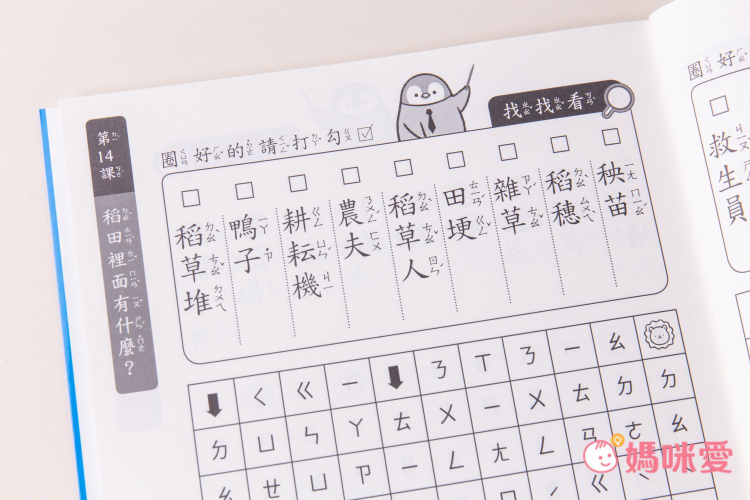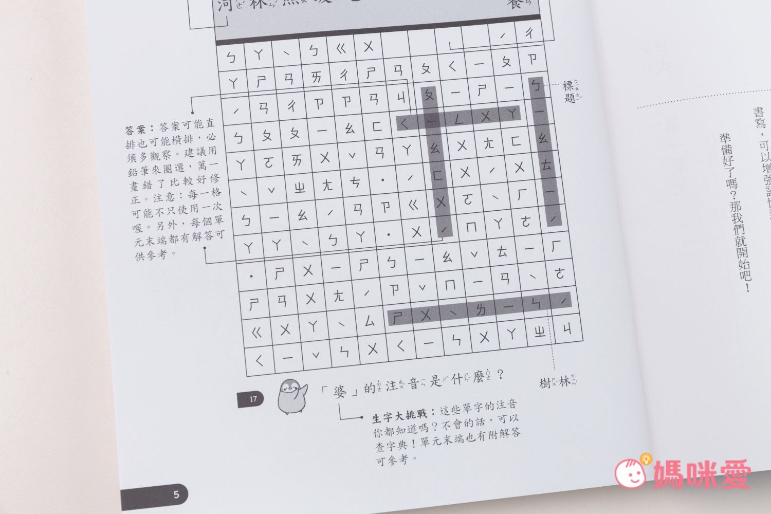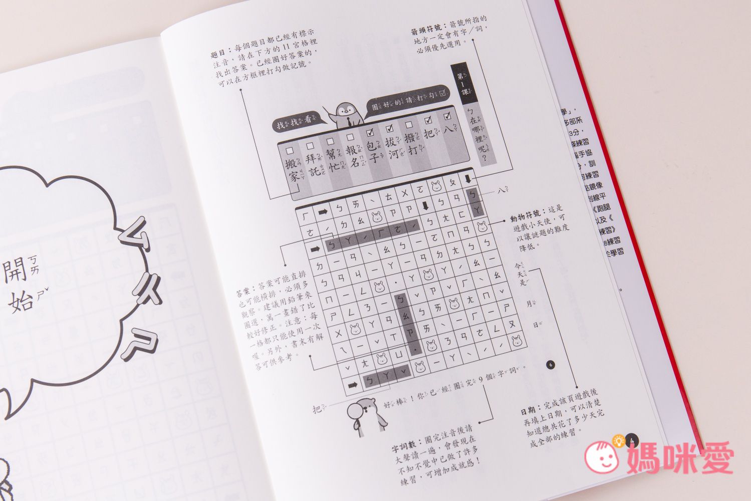 但相對來說這本藍色本難度是有增加的,相較於紅色本是找1~3字的字/詞,這本是找2~4字的詞!適合小一小二的寶貝使用!