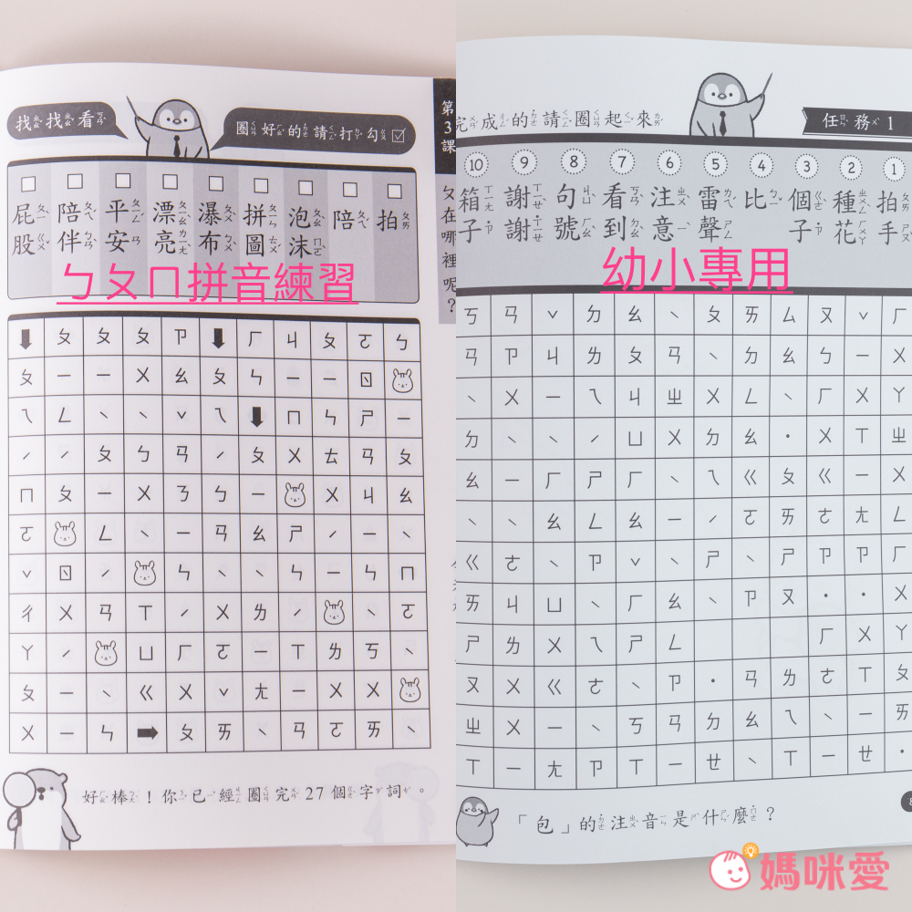 對大人來說簡直輕而一舉!但有的時候還是會眼花找不到相關的字詞,所以相信孩子也能透過這樣的練習,加強ㄅㄆㄇ的學習與認字!注音的排列有可能是直,也可能是橫,而且每一格只能使用一次喔❗️