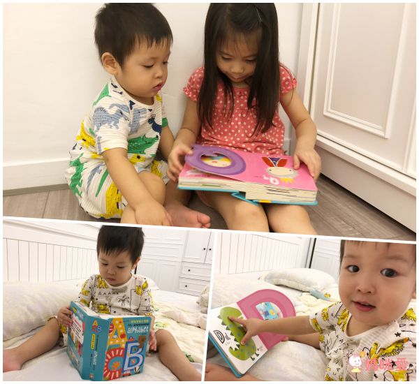 鬧鬧非常愛翻這本書,薇薇媽建議大家可以先讓孩子看圖,用中文說是什麼也可以,接著再指認字母、練習發音。多念個幾次,現在只要翻到字母 D,鬧鬧就很開心的說:「恐龍~呆呢艘~~(dinosaur的意思XD)」讓薇薇爸不禁稱讚:「真是一本好書耶!」而且姊姊也可以一起看,CP 值很不錯~