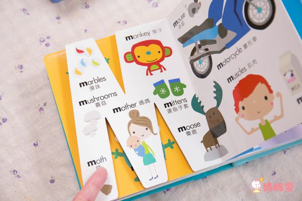 一樣維持和大開本一樣的鏤空字母造型,圖像學習有效又有趣,而且動手摸一摸,藉由分辨形狀讓印象更深刻了!