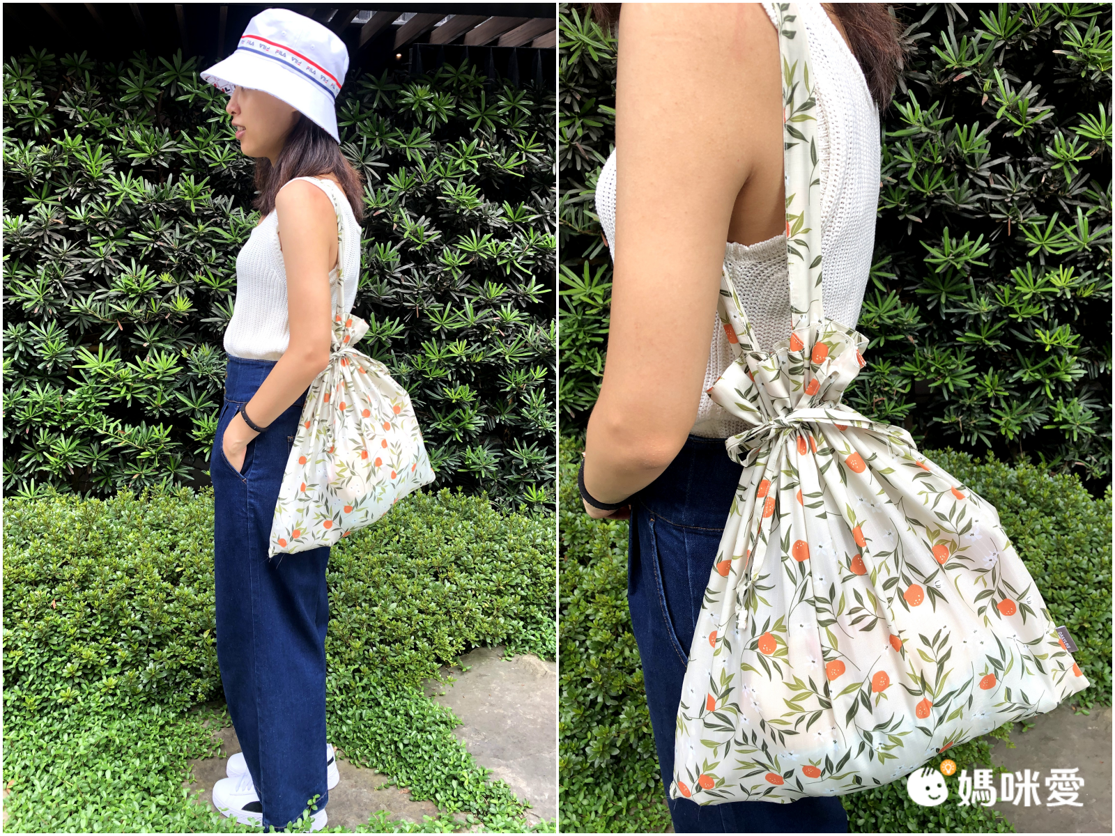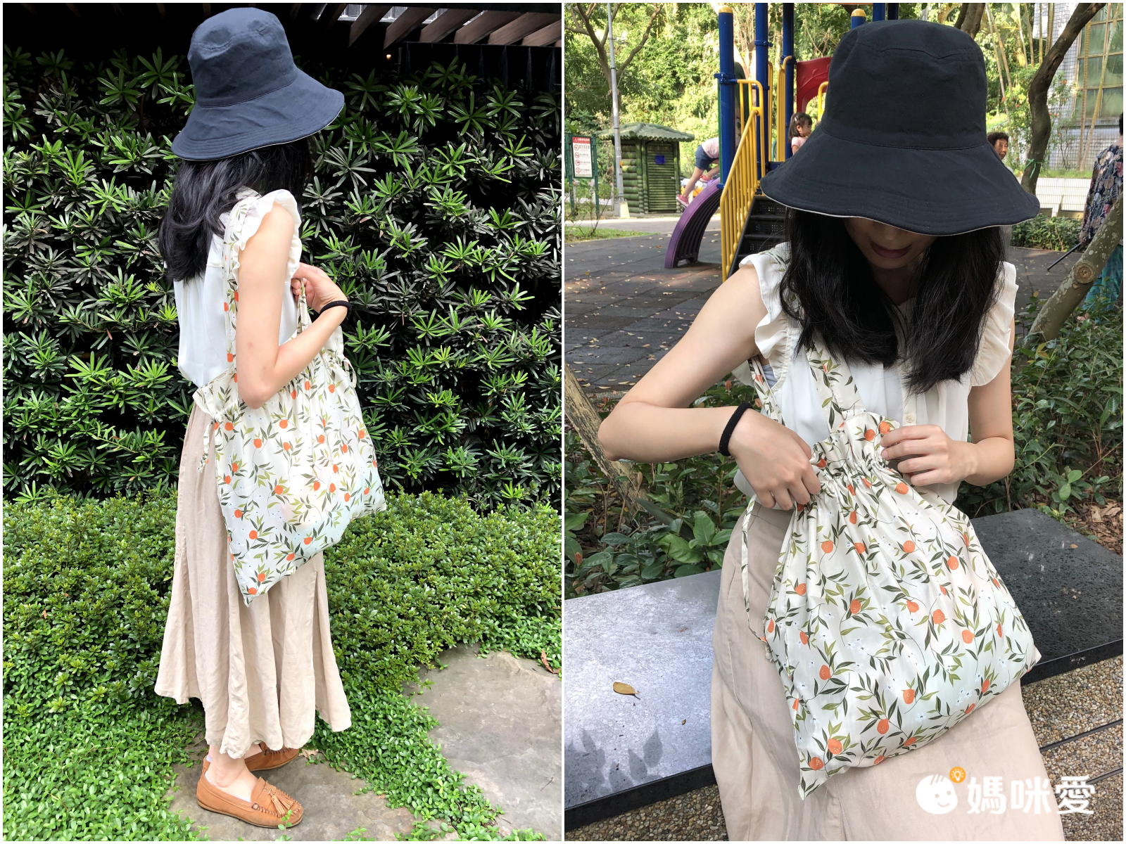 看編媽帶了這麼多東西!水瓶、雨傘、書、防曬外套、化妝包、錢包,全放進去束起來,一秒收納好簡單!