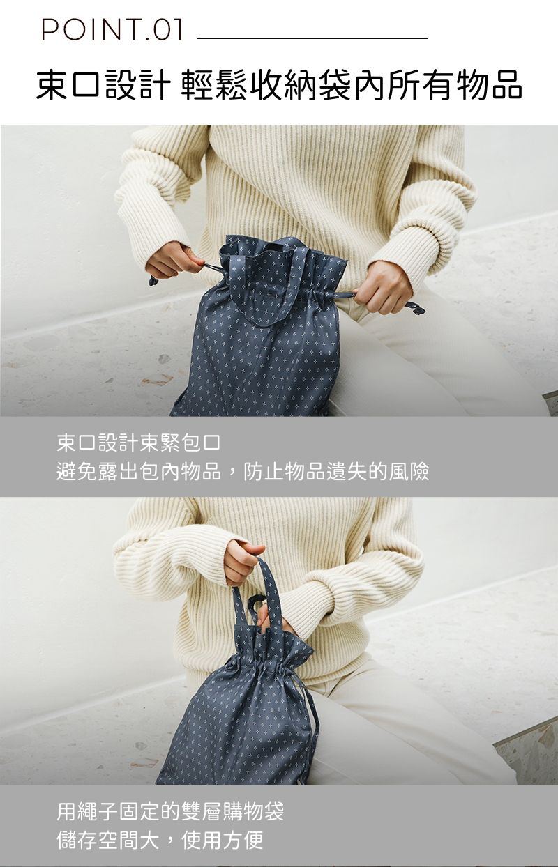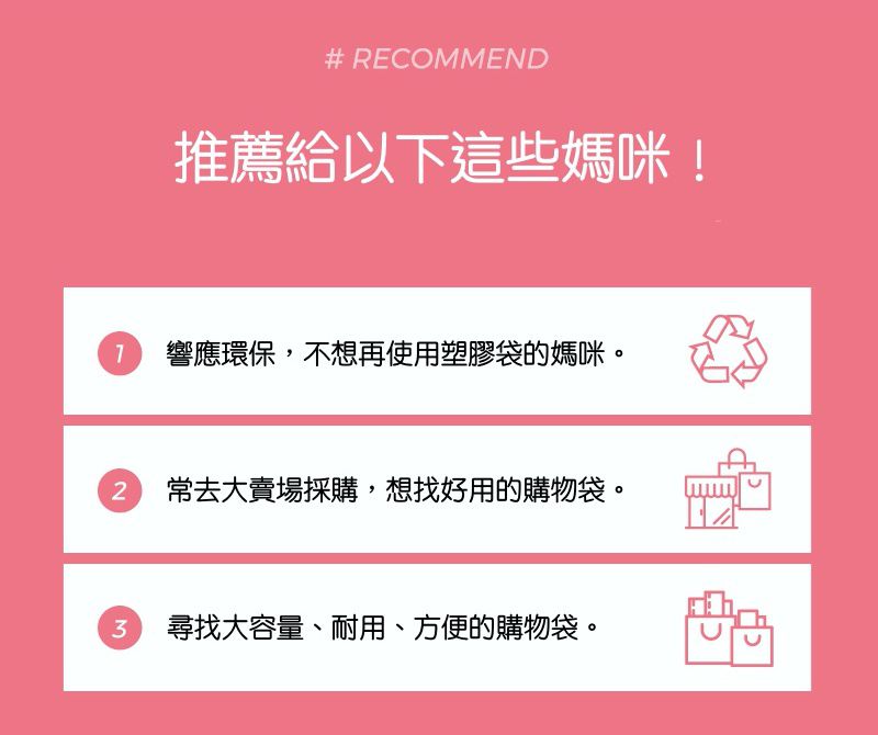 注意到沒有~它側邊多了兩個小耳朵綁帶!大賣場大採購時,小耳朵能把袋子固定在購物車上不亂塌,便利性UP↗ 而且袋子之間還可以用扣子連繫再一起呢~