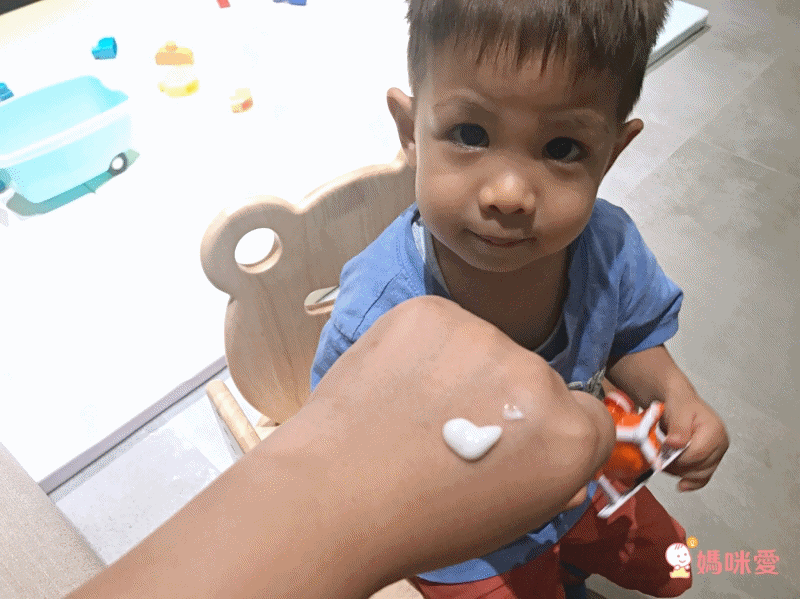 卡卡看到媽媽使用時,還搶著要自己擠呢!將身體乳用在卡卡手上與身體,很好推勻,小朋友也可自己推開~