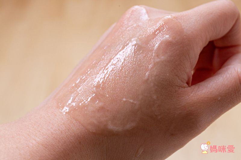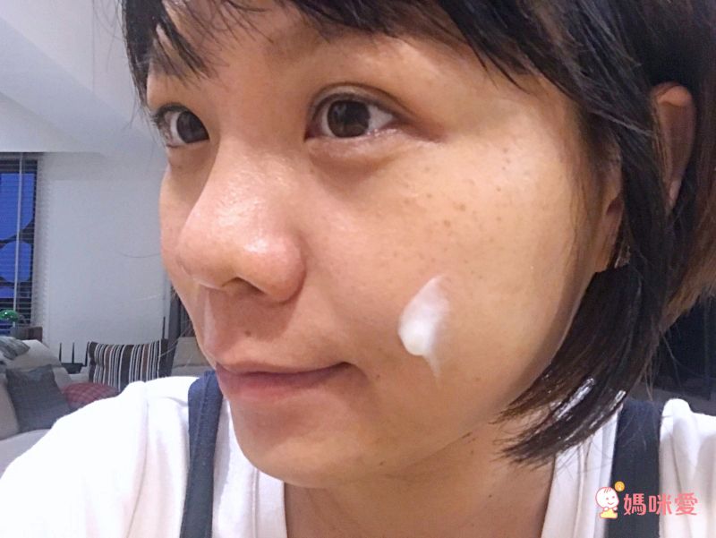 另外,因產品不含矽靈,相較於市面上產品,不會讓你有「瞬間吸收」的感覺,但多推幾下就會吸收了。簡單來說就是~質地豐潤但輕柔好吸收,卡卡媽試用在臉上也不會覺得太厚重:)