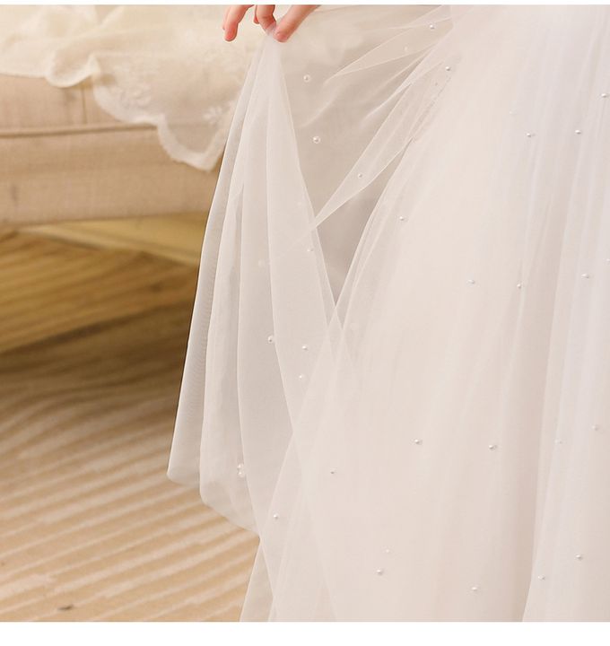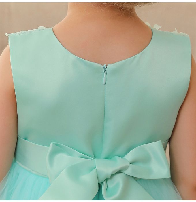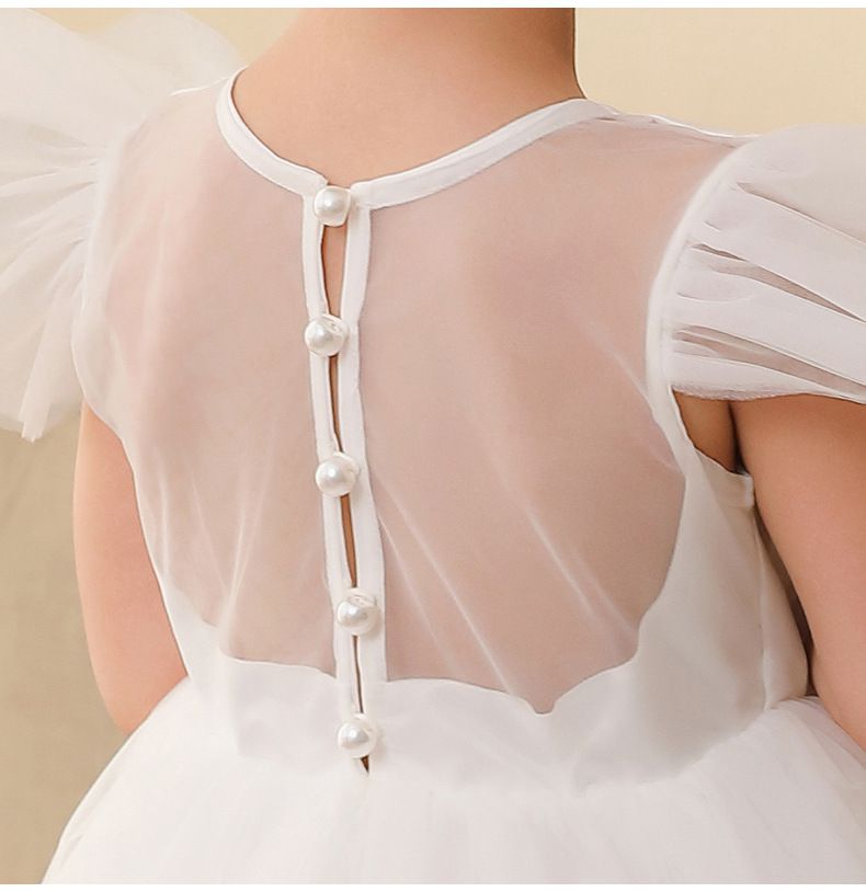 除了有長長網紗裙擺,後背V型露背設計搭配大蝴蝶結,設計感極佳,展現寶貝絕佳氣質。