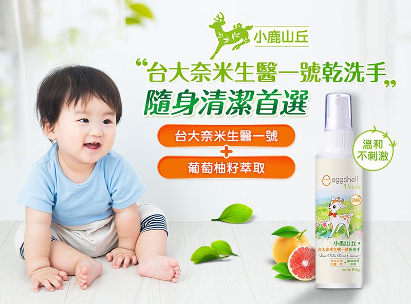 取用天然葡萄柚籽萃取,所以相對是安全又不刺激的清潔方式喔!長期使用酒精連編媽的手都會乾裂粗糙,更何況是肌膚嬌嫩的孩子!【小鹿山丘 台大奈米生醫一號乾洗手】溫和親膚,天天用也不傷手部肌膚!媽咪可以安心給孩子用