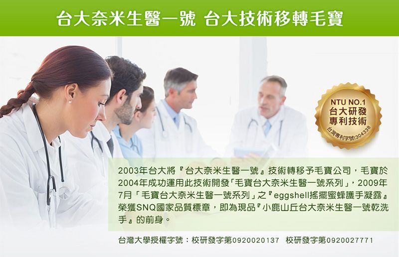 主要成分:水、酒精、抗菌劑、台大奈米生醫一號、葡萄柚籽萃取