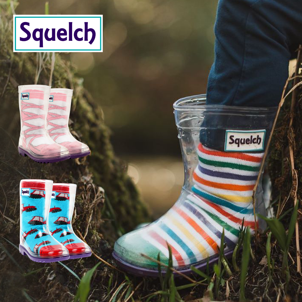 Squelch透明百變雨鞋是英國媽咪Amanda的為自己一對兒女設計的!在英國這麼多雨的國家雨鞋絕對是必須品,但一雙穿久了總是會想換換花樣或者是買一雙新的,所以Amanda就想出了用透明雨鞋搭配不同花色棉襪來創造出孩子自己喜愛的雨鞋,每一雙棉襪花色也是與兒女共同討論挑選出來的~