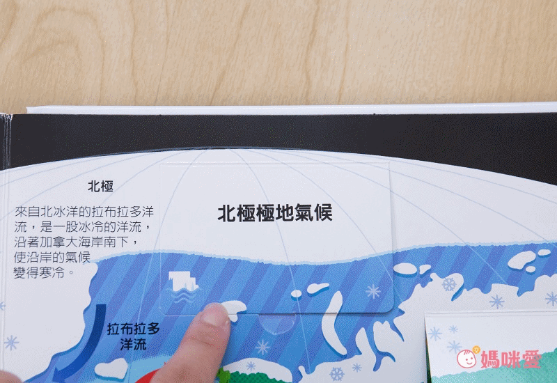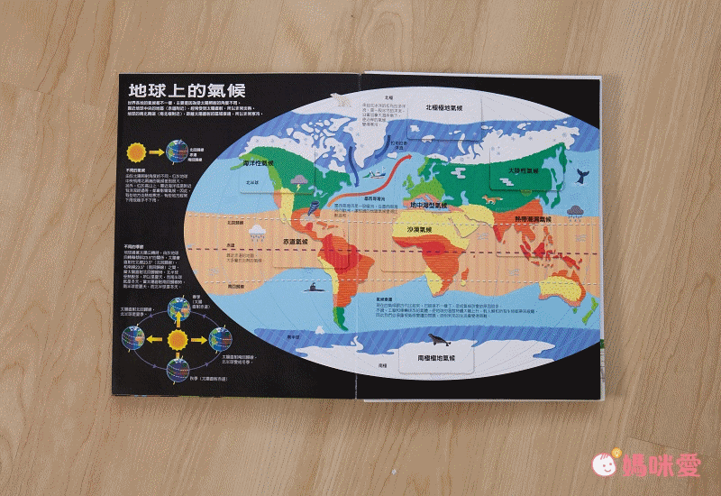 認識氣候!翻開小翻頁不但能認識不同地區的代表動物們以外,也能了解氣候形成的原因,媽咪也可以順便告訴孩子台灣的地理位置~