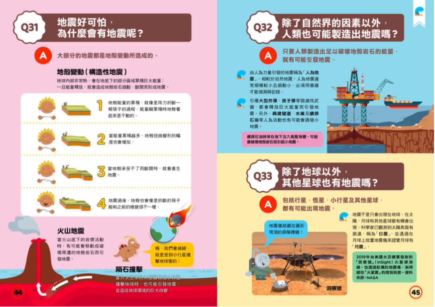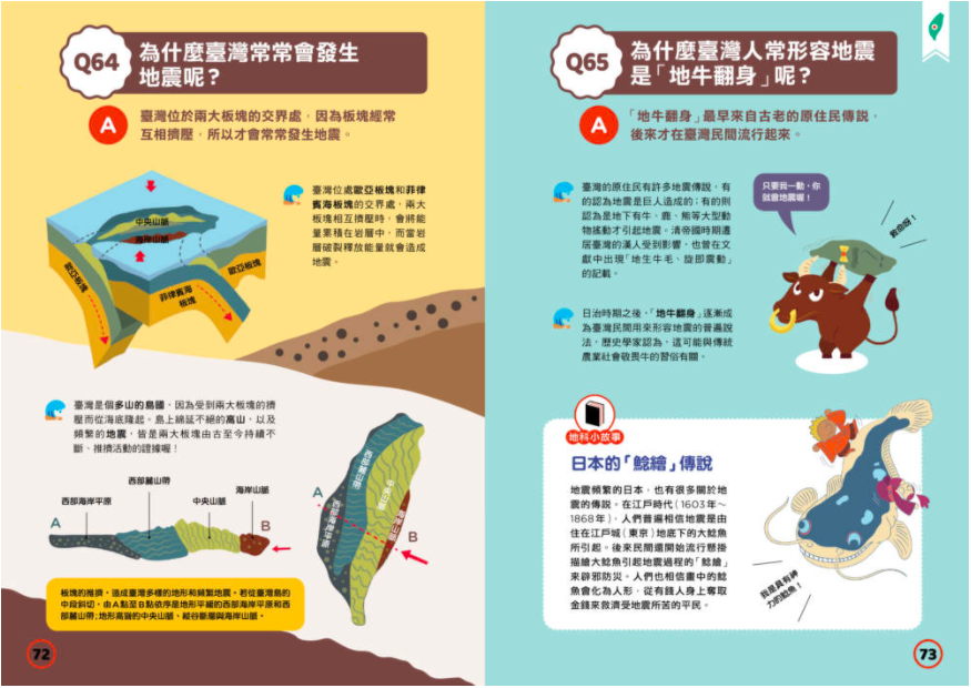 市面上雖然有許多關於地震知識的書籍,但大多若不是闡述深奧的地科理論而讓人卻步,就是偏重防災步驟,較少提及地震成因與測量原理。然而,地震總是突如其來擾動大家的生活,如果不能從成因到預防災害──各方面真正「有感」了解地震及自己能做到的應對,對孩子而言,地震仍然會是不可掌握的怪獸。