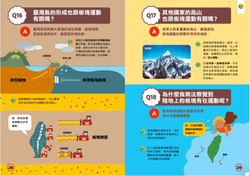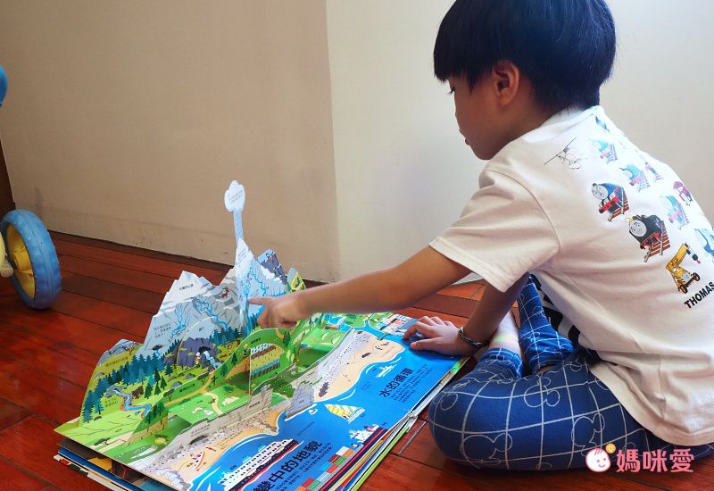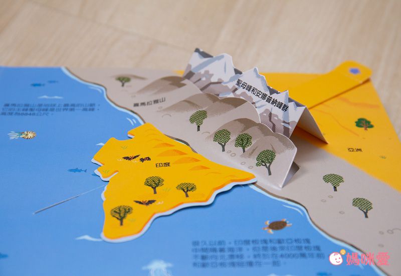 這本書隨處可見推拉小機關,其中竟然可以動手「造山」!直接把「板塊擠壓->形成陸地」的觀念從動手做中完全的烙印在孩子腦袋裡!!