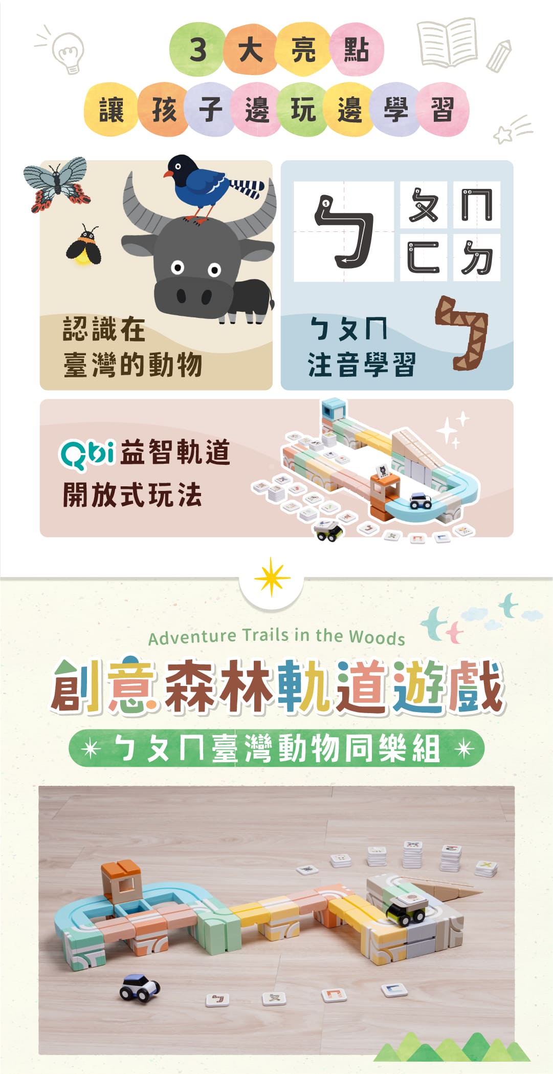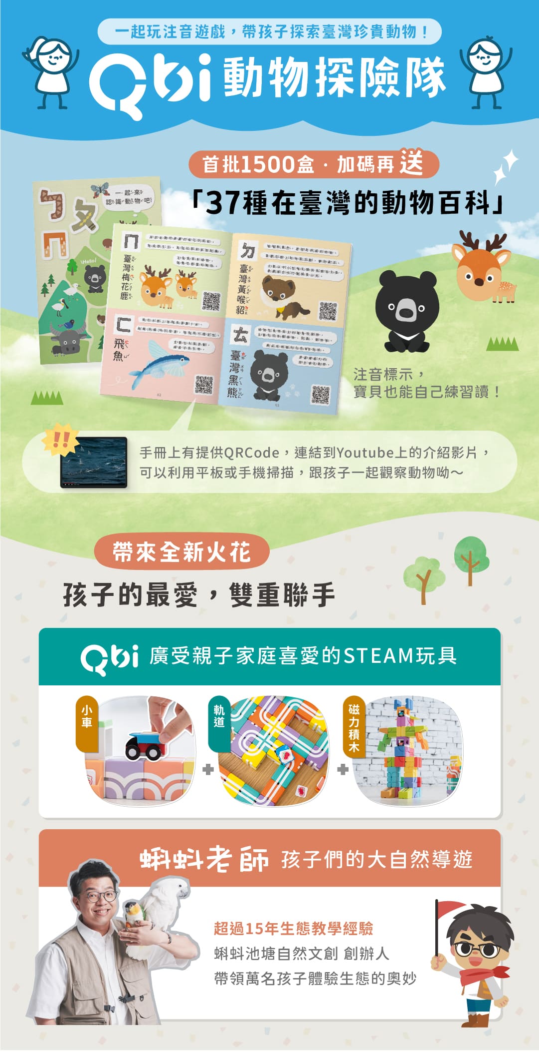Qbi首度與生態講師兼孩子王的『蝌蚪老師』聯名👑帶孩子認識37種台灣珍貴動物,還能學習ㄅㄆㄇ!