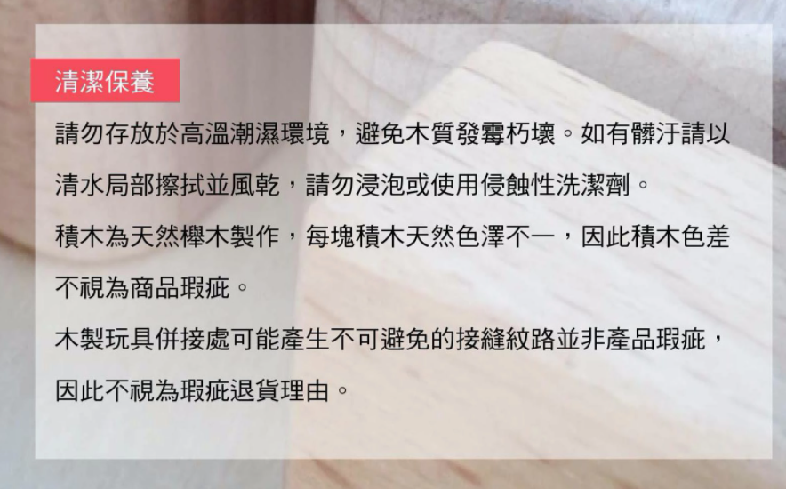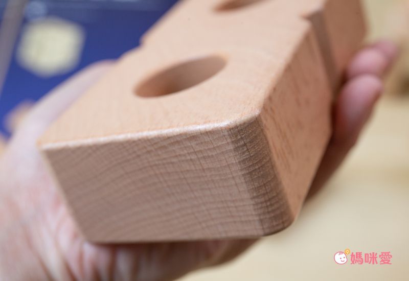 實心櫸木的好質感,尺寸符合孩子手掌大小,好抓握不刮手!