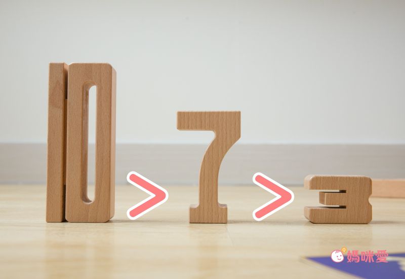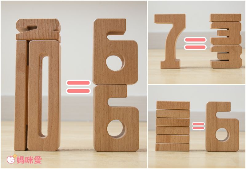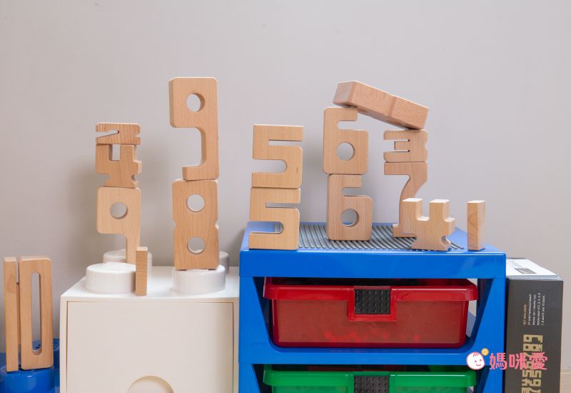 數字的高低帶表數字本身數值大小「積木愈高大代表數值愈大,積木愈矮小代表數值愈小」把數量用積木的大小差異,讓小小孩在爸媽的引導下輕鬆理解數值的概念。