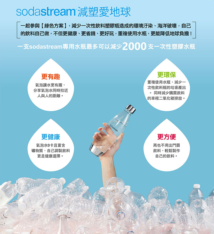一年四季都可以喝氣泡水,尤其夏天最需要,家裡準備一台氣泡水機,絕對是一個睿智的選擇!而且編媽誠心推薦購買 Sodastream 氣泡水機 ,因為 Sodastream 是氣泡水機界的領頭羊,在安全和品質上絕對都可以放心,鋼瓶耗材的供應也最穩定,不用怕哪天牌子收掉買不到鋼瓶,讓氣泡水機淪為空殼。