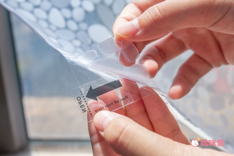 第二步,把背面的透明貼紙撕掉。因為這款窗貼是採用靜電式黏貼的,不僅可以重複使用,也完全不用擔心會殘膠喔!