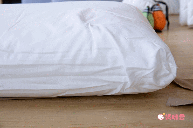 床墊以及保潔墊皆為100%純棉~膚觸極佳又舒服~看喬治睡得多開心~~~
