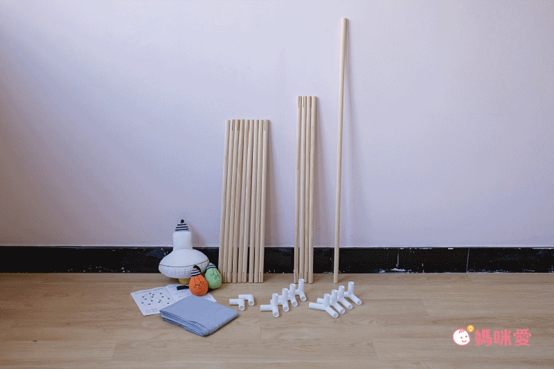 說明書上教學非常詳細,將木棍使用白色接合管連接起來,成為小屋的支架!