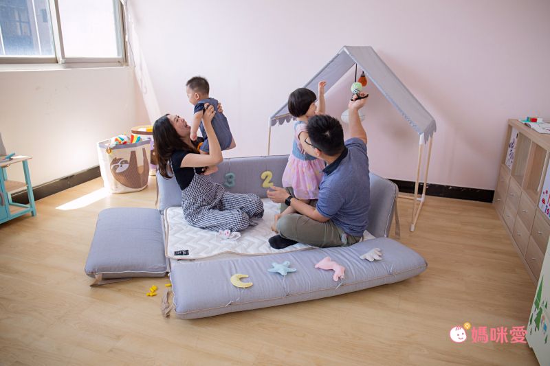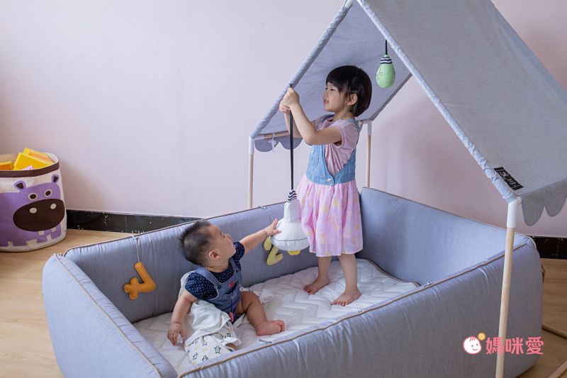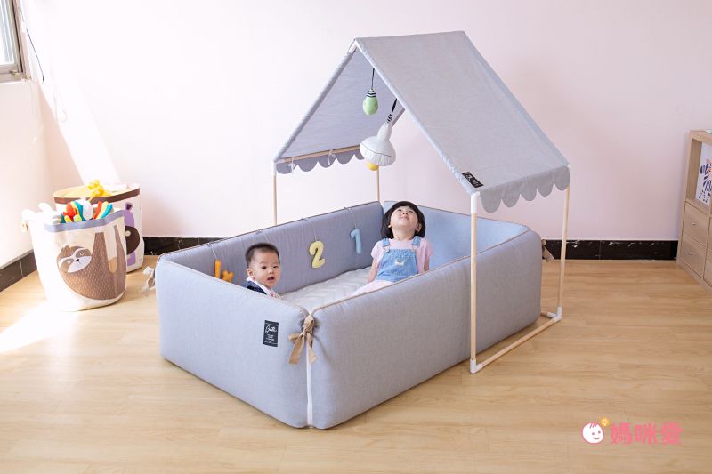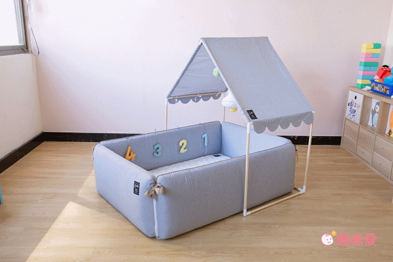 除此之外,床圍可以攤開,讓爸爸媽媽也可以跟寶貝們一起玩~~~當作遊戲墊增進全家人的感情!
