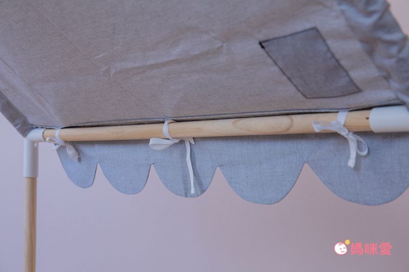 但要特別注意的是,屋頂之處再裝上屋頂布時,需要將之穿過木棍~
