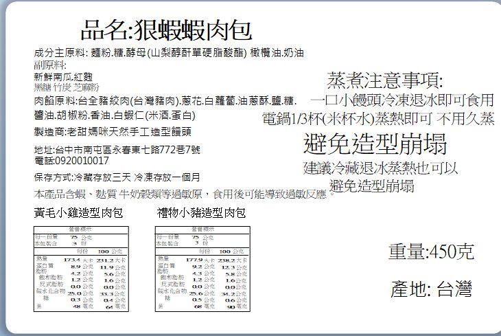 小雞造型好可愛,粉紅豬豬還有超萌的蝴蝶結,美味又好玩,寶貝看到絕對愛,趕快揪姐妹們一起買起來!狠蝦蝦肉包有稍微用胡椒調味,還請媽咪注意喔!
