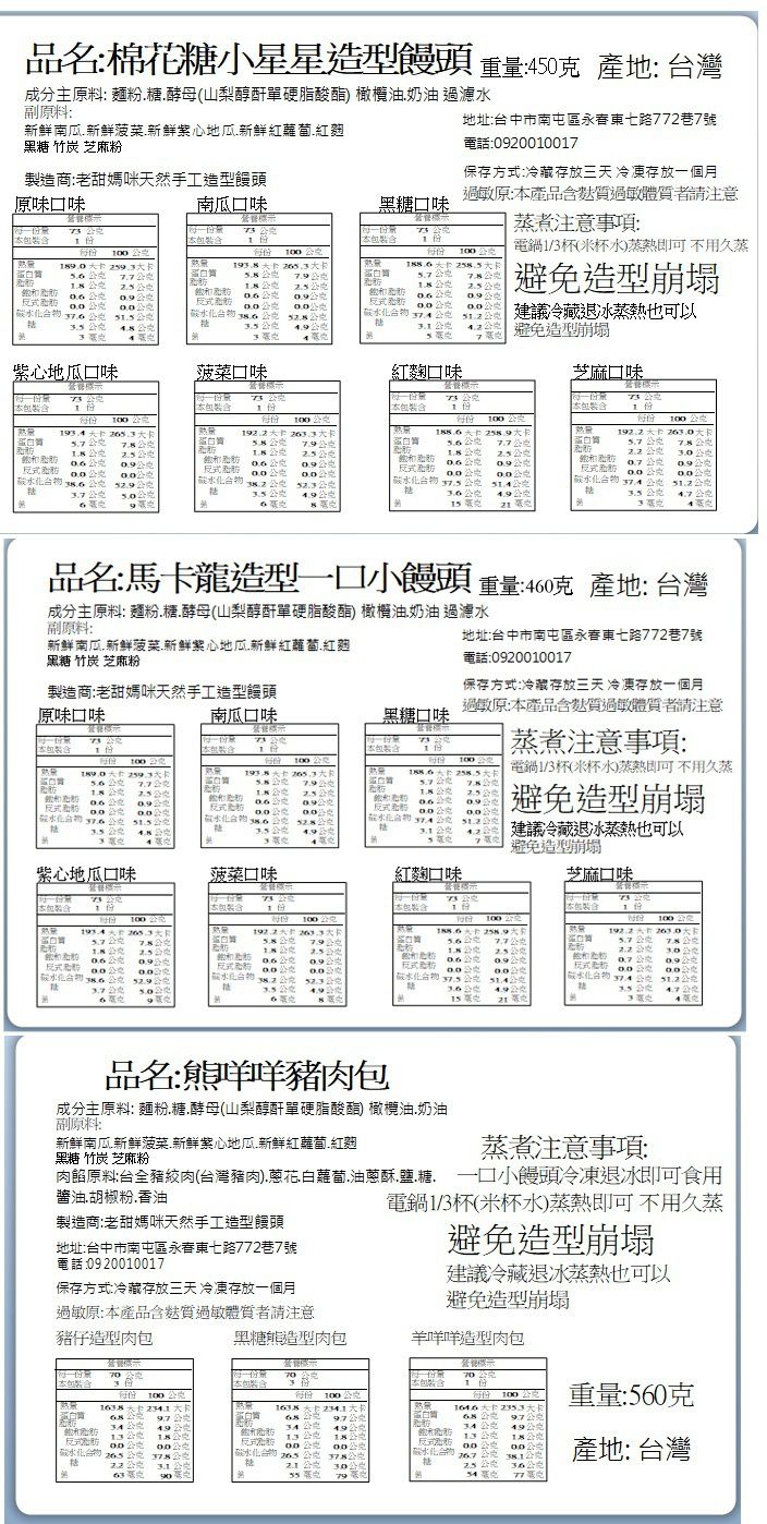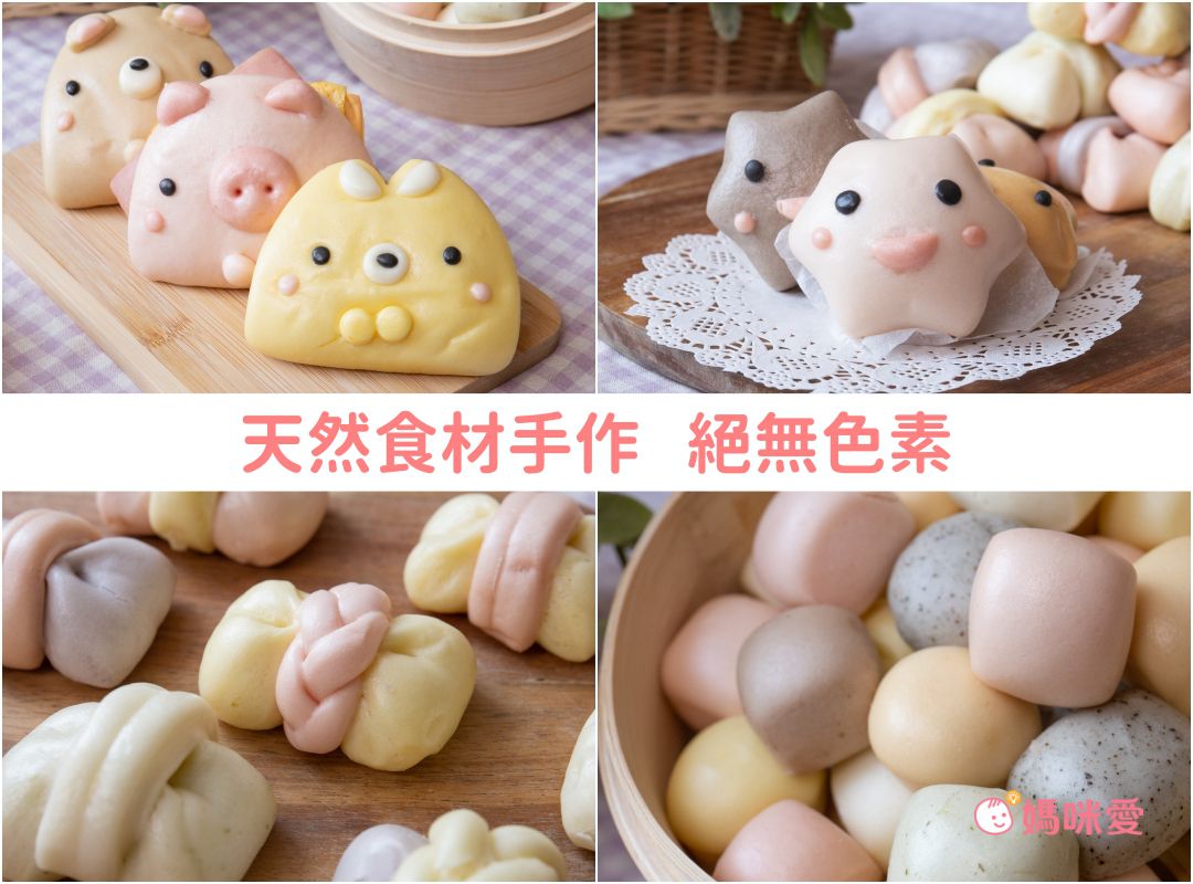 手工製作 #天然無色素,這類的造型饅頭讓編媽很安心的是,絕對沒有摻人工色素,老甜媽使用黑糖、南瓜、紫心地瓜等安心食材,吃得到繽紛造型,營養無負擔!