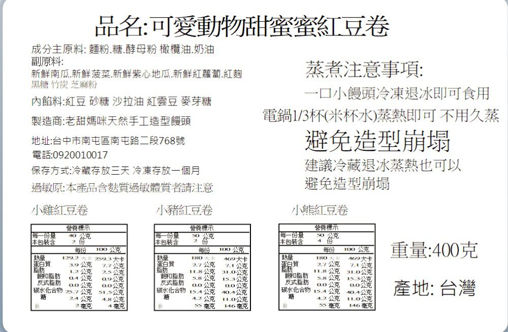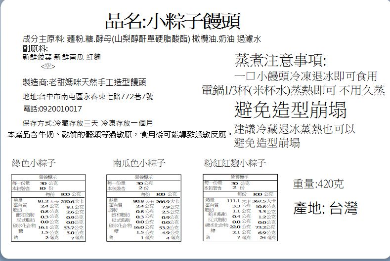注意事項:一小口饅頭退冰後即可食用,全系列饅頭半杯水蒸熱即可,避免久蒸造成造型塌陷。