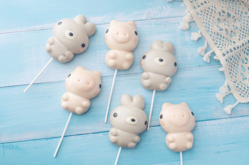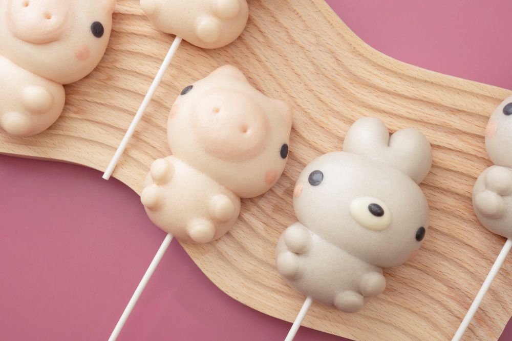 饅頭變身成棒棒糖跟寶貝們見面啦!可愛的小豬和兔兔造型,連可愛的身體都做出來啦!