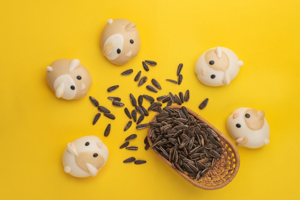 老甜媽選用的黑糖,是特別請廠商製作沒有焦糖色素,只有使用甘蔗糖二砂、水、甘蔗糖蜜的原料,通過SGS檢驗,媽咪可以安心給寶貝吃喔~天竺鼠一隻隻擺出來是不是超萌超可愛呢!(小知識:天竺鼠是吃牧草、紅蘿蔔、葉菜等等喔~但為了攝影開箱需求選用葵花子)