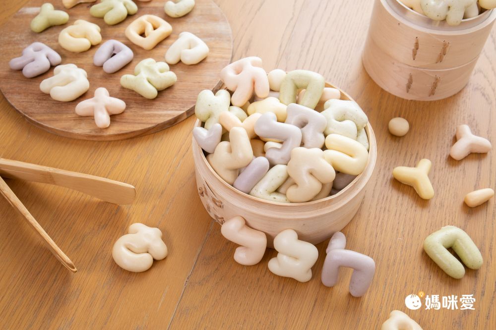 說起來做注音饅頭真的很「搞剛」,還得訂製特別的造型模具才可以,在製作上也要非常小心,編媽與老甜媽來回測試好久!才能有如此可愛的ㄅㄆㄇ~