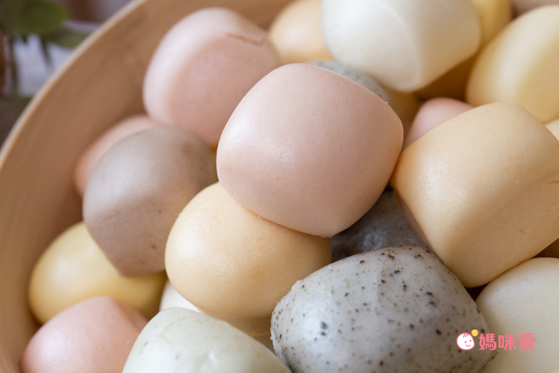 這款馬卡龍一口小饅頭的尺寸剛剛好,對小小孩來說拿著咬,是很棒的安撫點心哦!