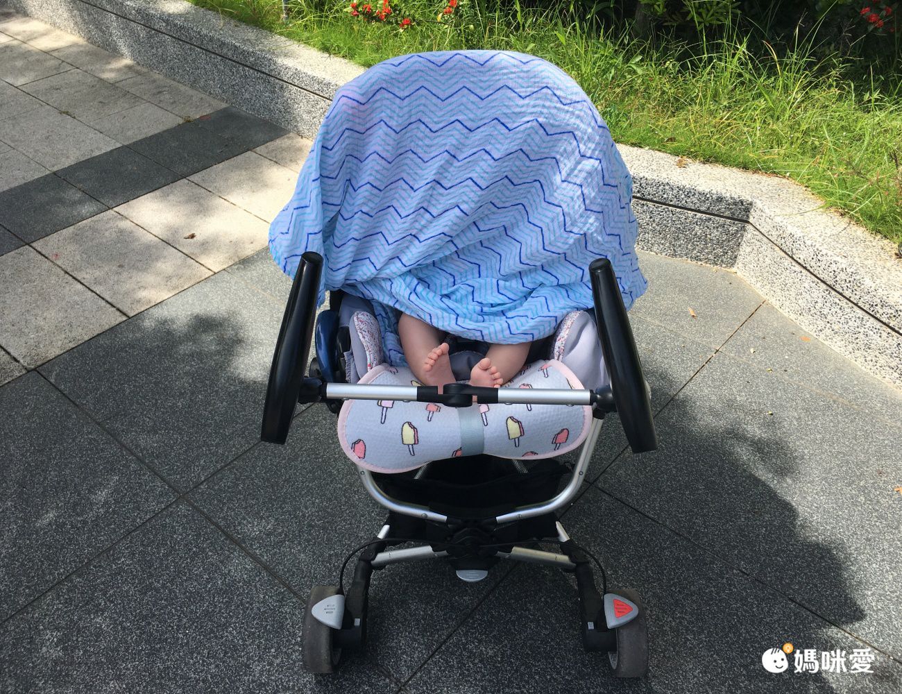 再來就是很多媽媽都會帶出門當外出遮陽被,當陽光強烈時拿來當遮陽很好用,可避免寶寶被陽光直射傷眼。