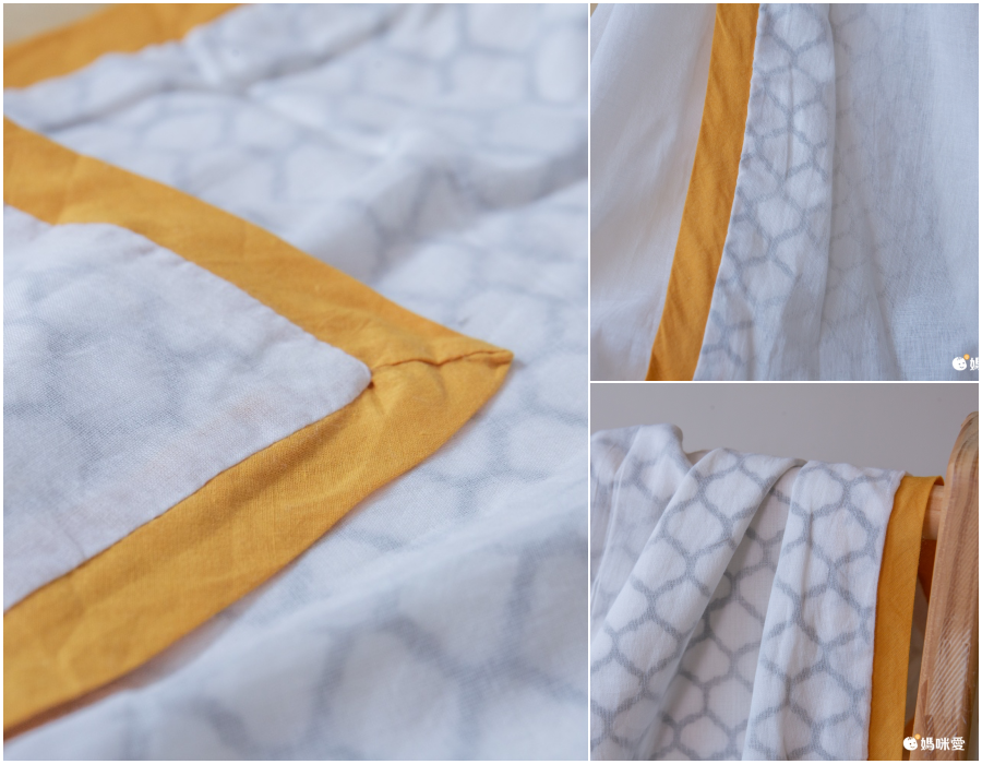他們家的特色除了大名鼎鼎的杜哈柔紗毯之外,紗布包巾和被毯都是使用100%的有機棉,無農藥殘留,採用無毒染料,不含甲醛跟螢光劑等有害化學材質,而且顏色花色和圖案都很鮮艷!手感非常的柔軟,就連圖案花色的部分也是一樣的有保持柔軟哦,讓寶寶使用時感受到最天然最親膚的觸感~~~~
