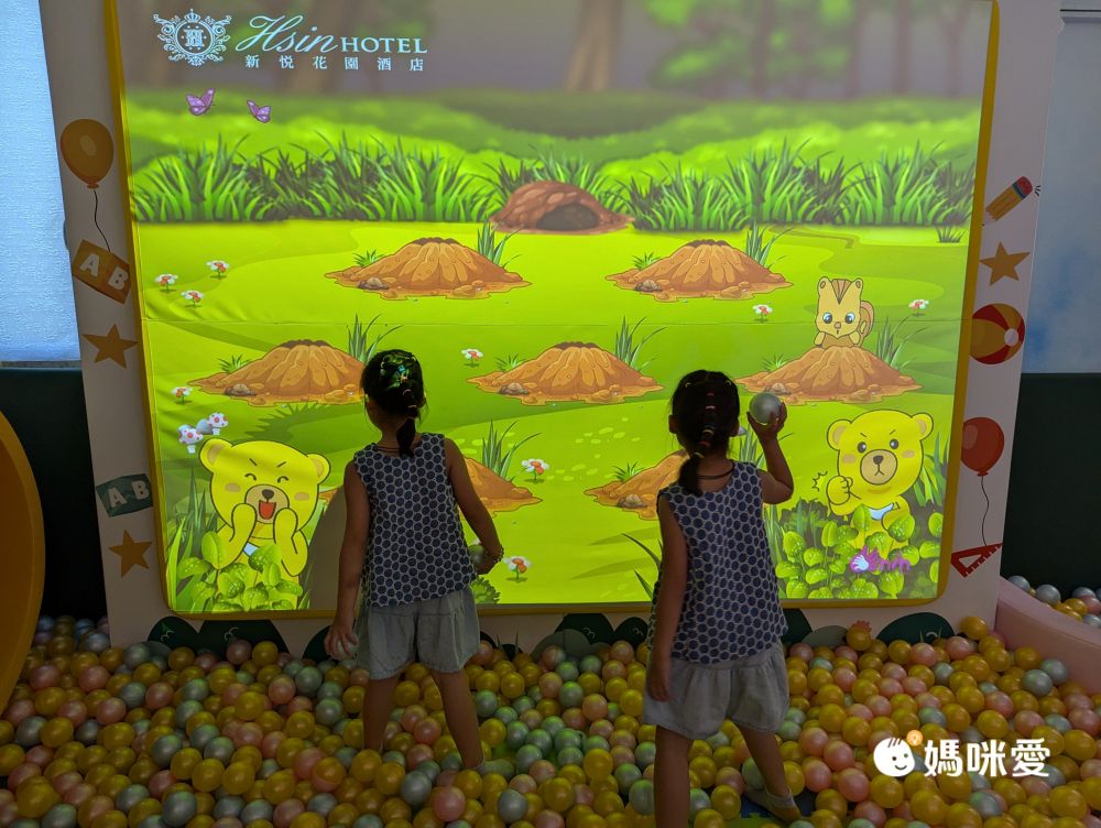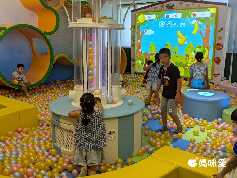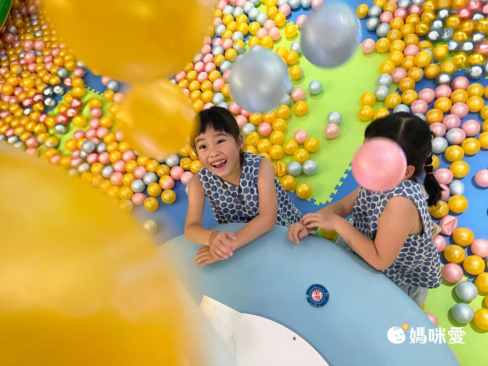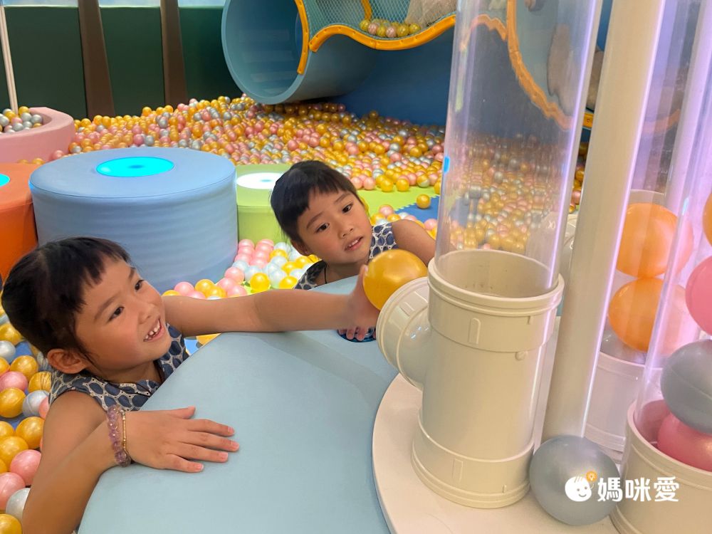 叮噹最愛的設施可能是球池裡一台會把球吸上去,再砸下來的機器(?!,姐妹倆玩得超開心!