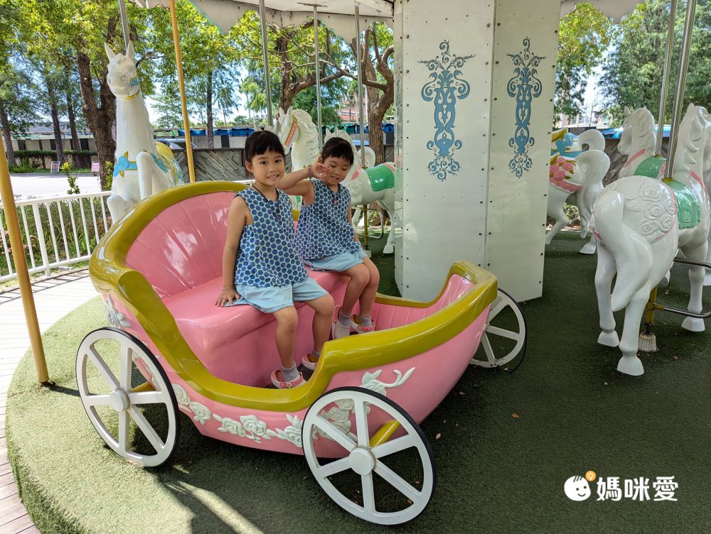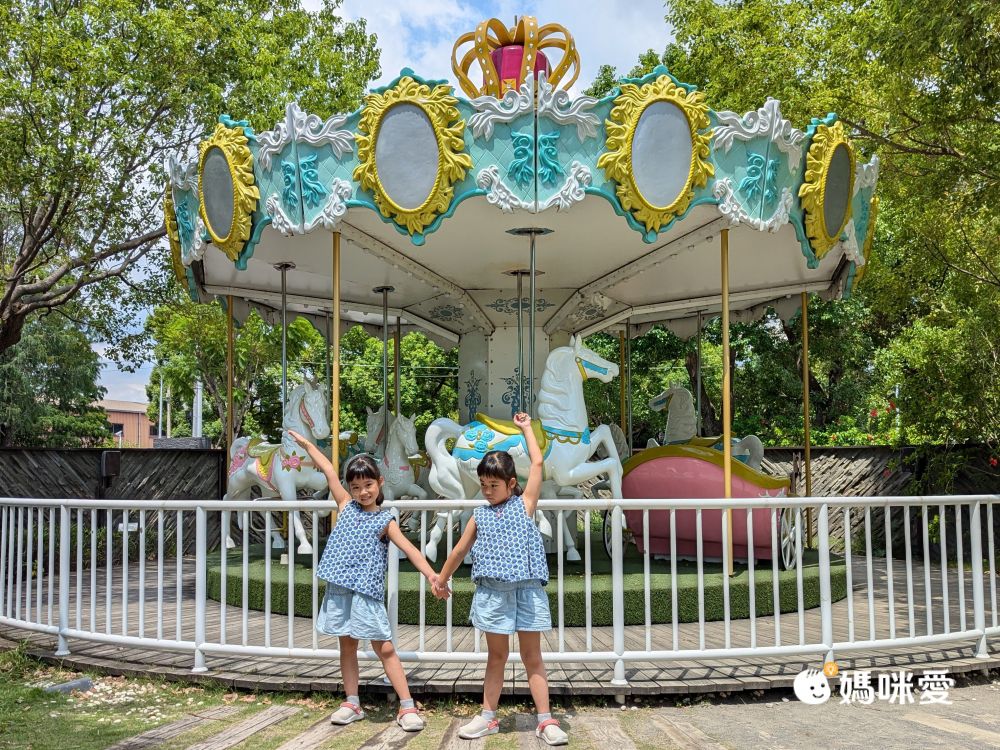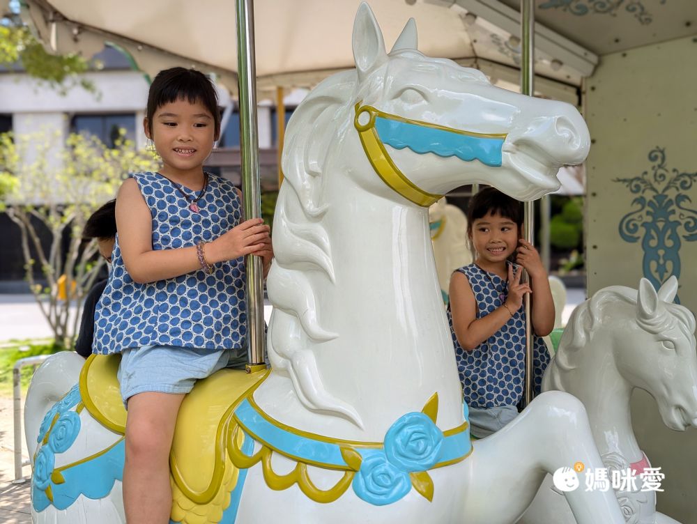 酒店外還有許多拍照的景點,就說這裡是網美朝聖的地方啦!最吸引人的就是酒店前的旋轉木馬,媽咪本來以為這個只是裝飾用,但它是實實在在能載人的旋轉木馬,住房的貴賓都能在開放時間內無限搭乘喔!