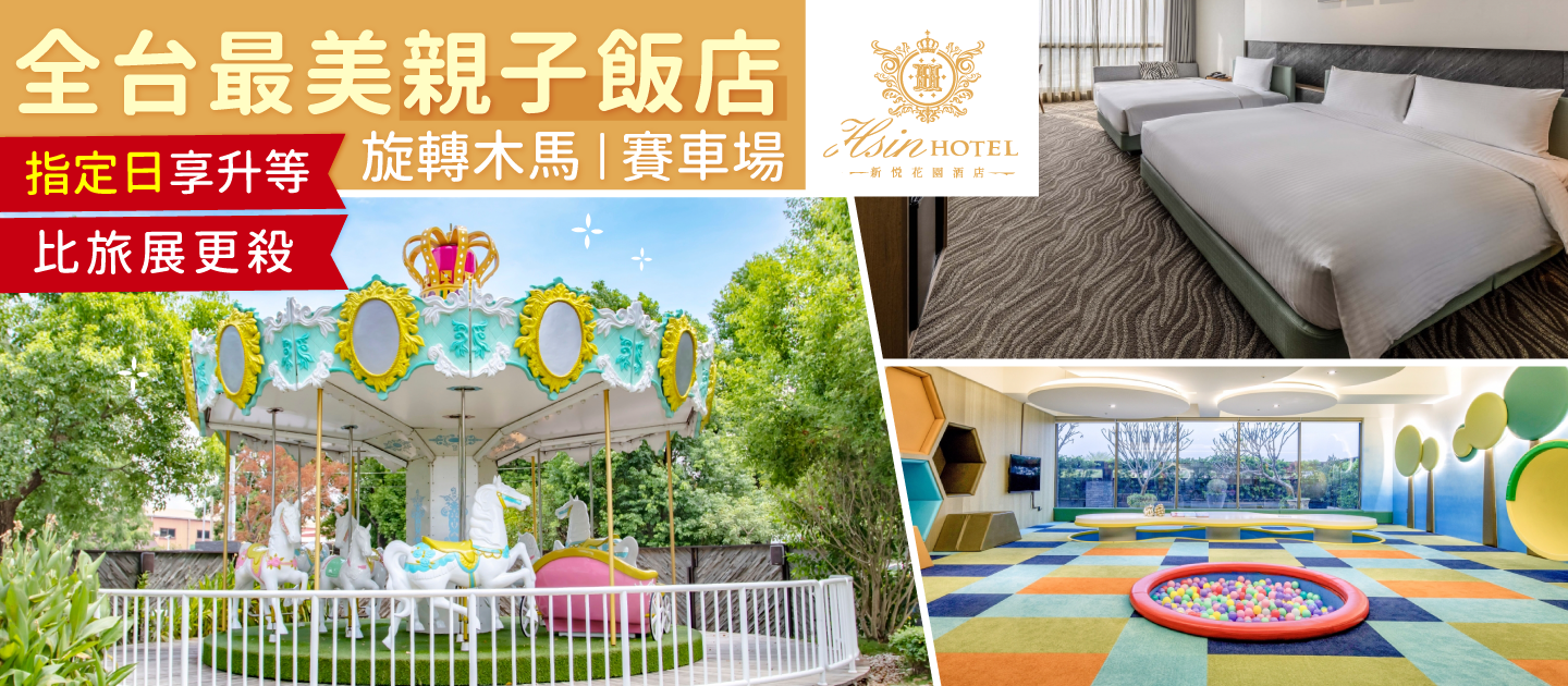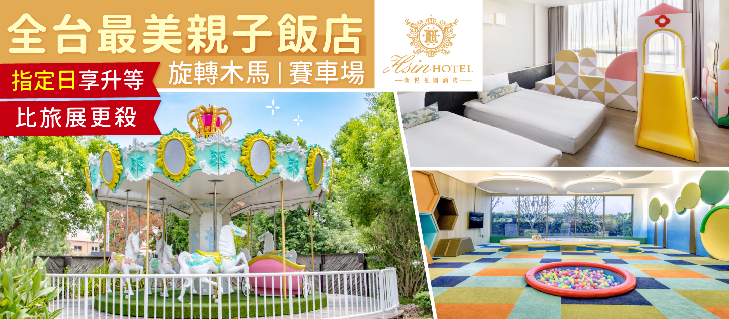 「媽咪媽咪,快看,有熊在爬房子耶!」一個稚嫩的聲音不停地在耳邊說著,今天的嘉義天氣晴朗,遠遠的就能看見黃澄澄的小屁股甚是可愛。是的,我們來到了嘉義有著夢幻旋轉木馬、網美必朝聖的「新悦花園酒店」。