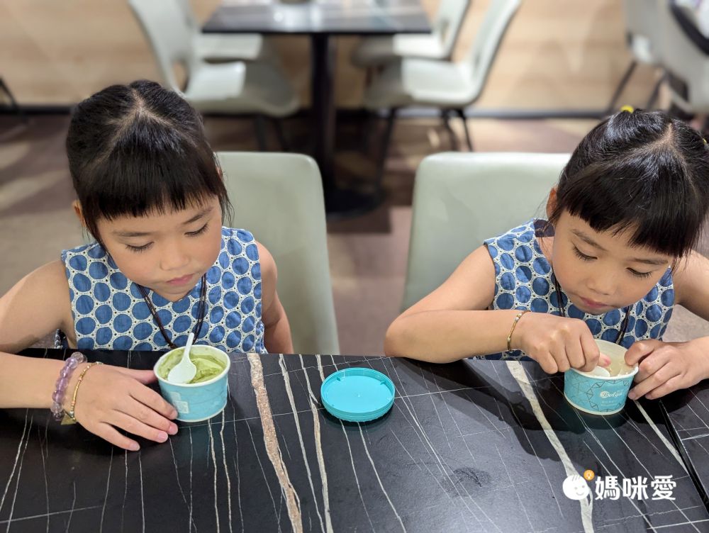 飯後還贈送了冰淇淋,比哈根達斯大一點的小盒裝。經詢問,大約會有5.6種口味,隨機上桌,我們吃到抹茶和牛奶的,兩種都很好吃~