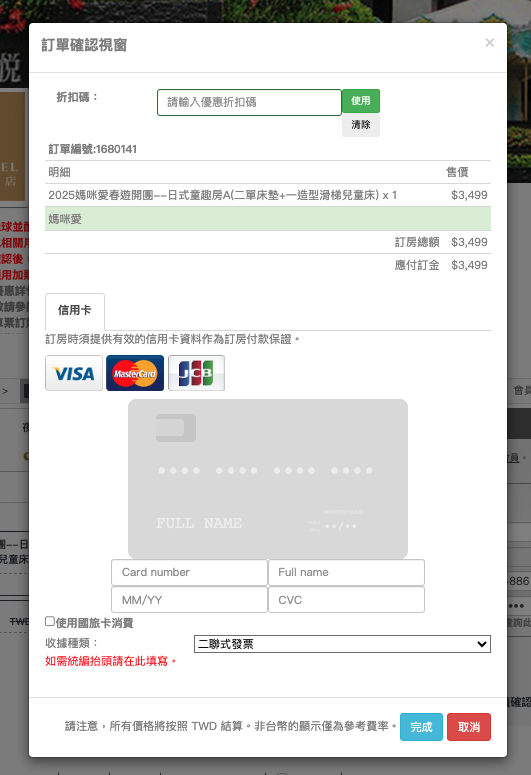 5. 確認付款金額與付款方式,可選信用卡或國旅卡付款。