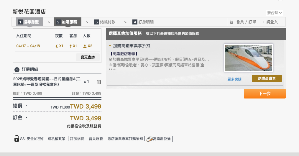 3. 確認後,點擊下一步,確認是否需加購其他服務。