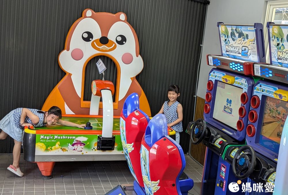 賽車場旁邊還有遊戲室,裡面有幾部機台,有冷氣超棒,意外發現叮噹蠻會玩桌上曲棍球的?!
