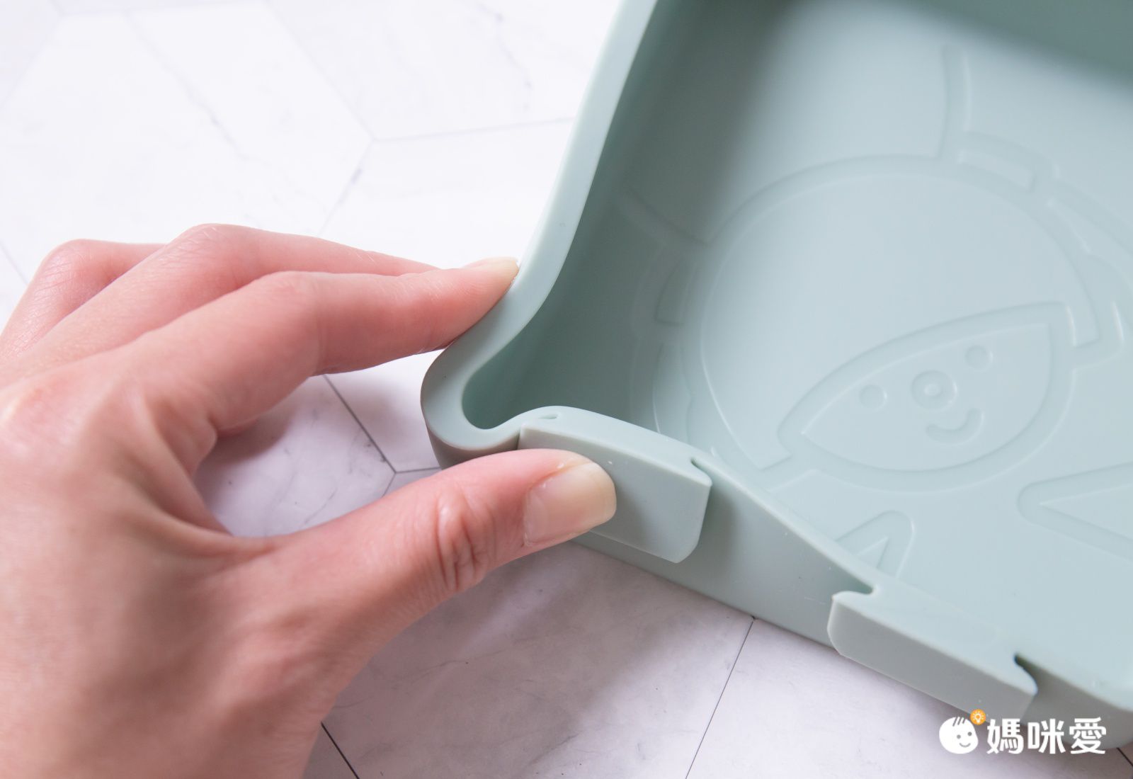 矽膠餐盤底部有些微的摩擦力,可以防止孩子輕易地推倒,這點相當適合剛學習自己吃飯且還無法好好掌控力道的寶貝,看荷包蛋弟弟乖乖的坐在座位上自己吃飯~媽媽終於可以擺脫「跪婦」身份啦!