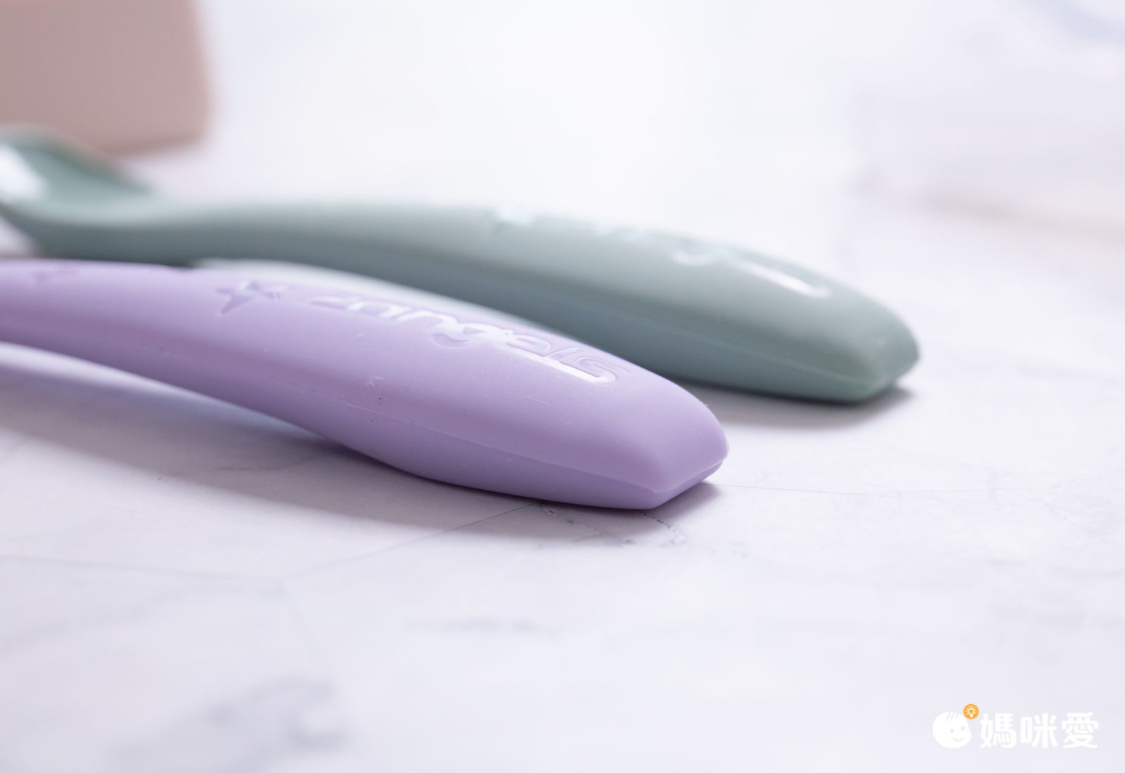 接下來看看同系列的矽膠湯匙吧~大人餵和寶貝自己吃都很ok唷!上面還有小星星圖樣,超可愛的~