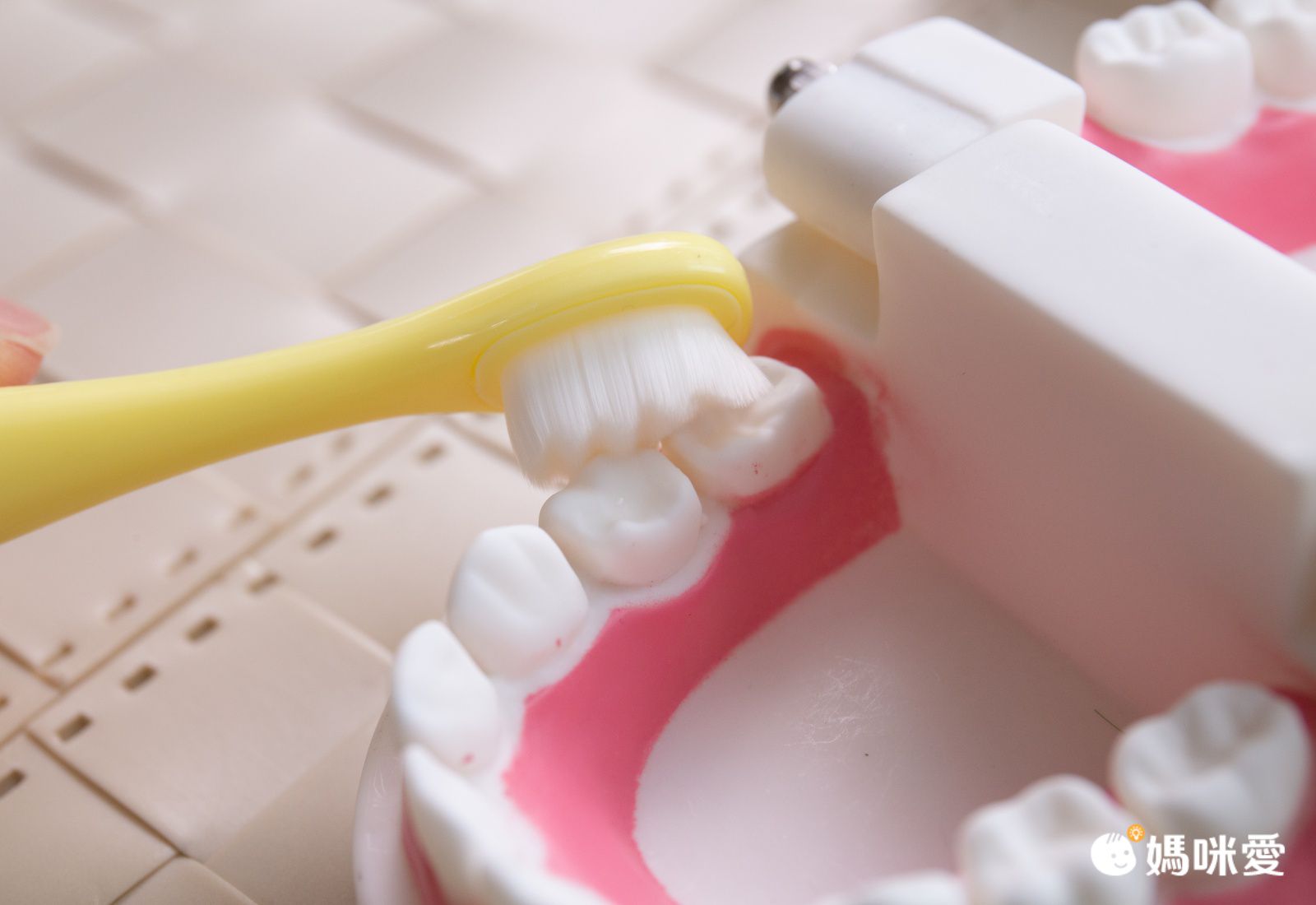 刷毛精準的卡住牙齒的三個面,連最容易被忽略的牙齒後側也清潔溜溜