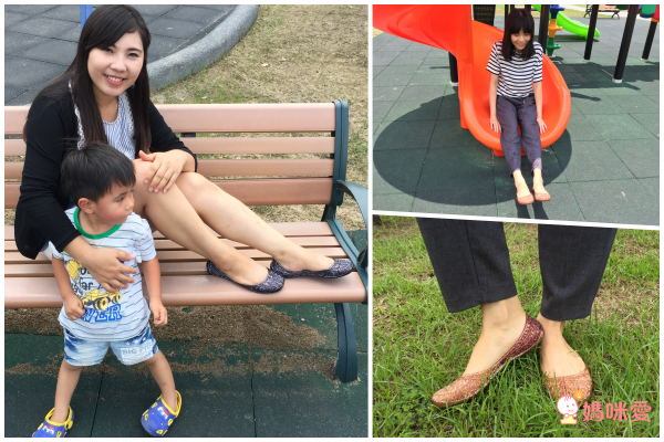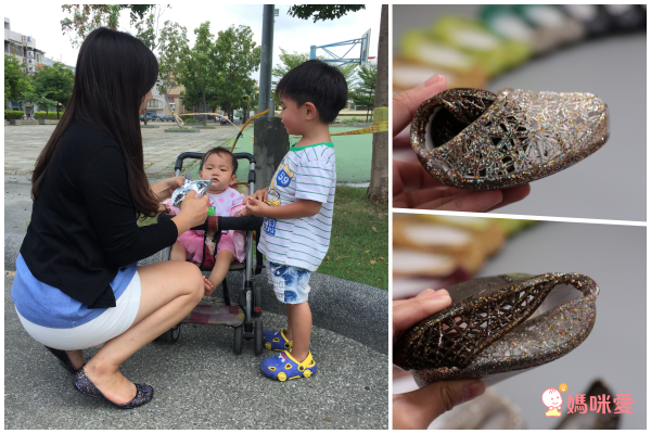 因為前一天剛下完大雨,公園還有多處積水,如果穿原本的布料涼鞋肯定就濕了!但這雙果凍鞋防水、排水快乾,可以盡情踩踏,孩子跑來跑去玩也能跟著他們一起了!不管是沙地、草地、水窪,它都能很好的駕馭,也非常舒服不怕會滑,超棒的!就算濕了髒了,立刻沖一下乾淨的水,走一走就乾了~這款真是名不虛傳的好穿欸!